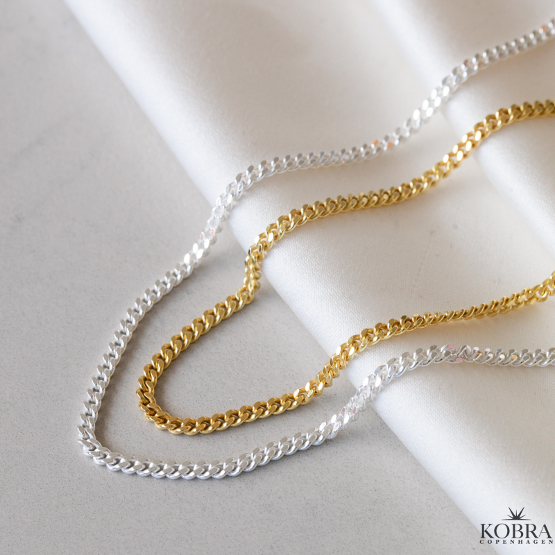 Kæder som kan glides igennem vedhænget: Venezia, Figaro samt 2 mm panzerkæder. Du finder løse kæder her