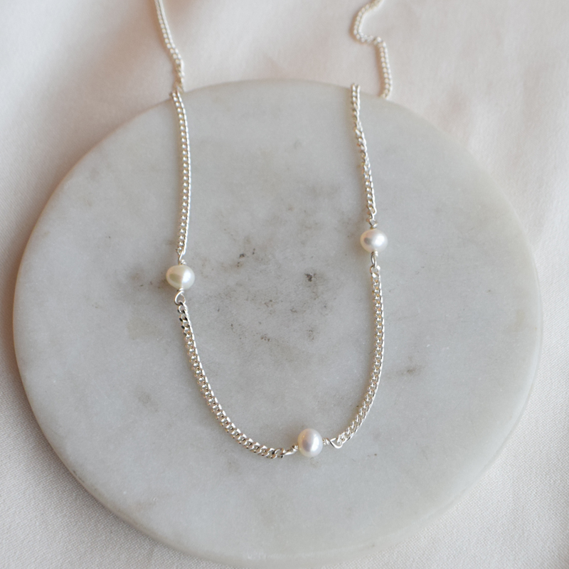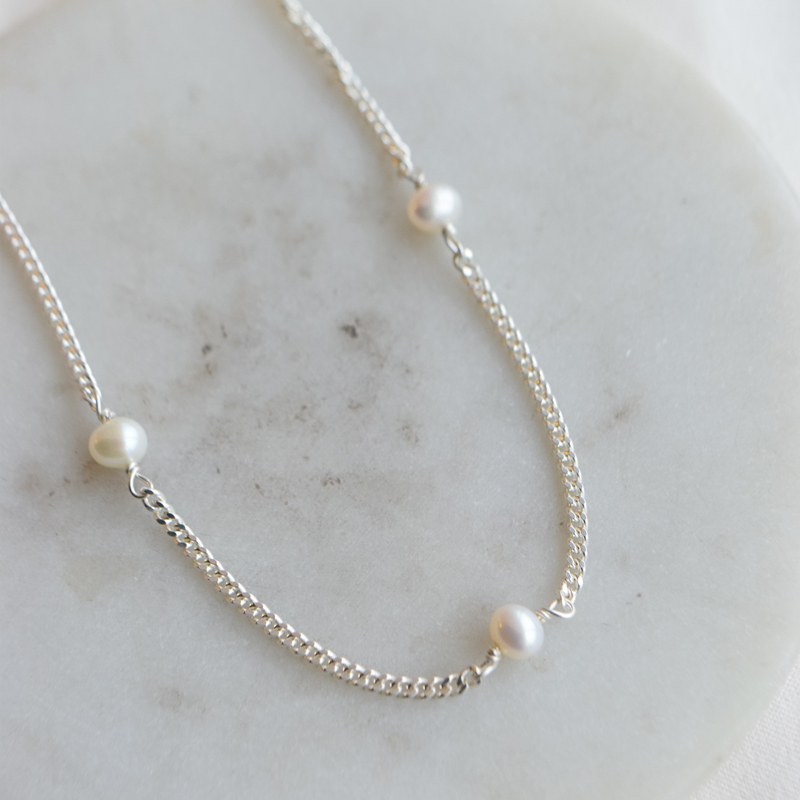 "Monroe" halskæde i sterling sølv med perler