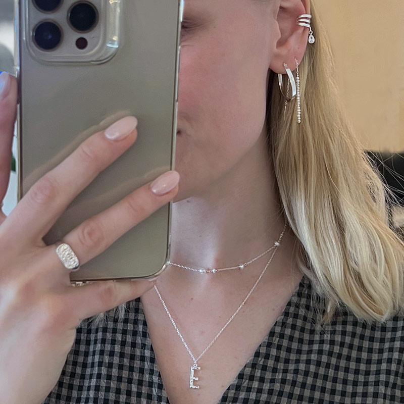 Smuk og anderledes personlig bogstav halskæde i "organisk" design med enkel fin ankerkæde.