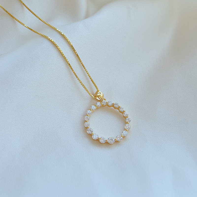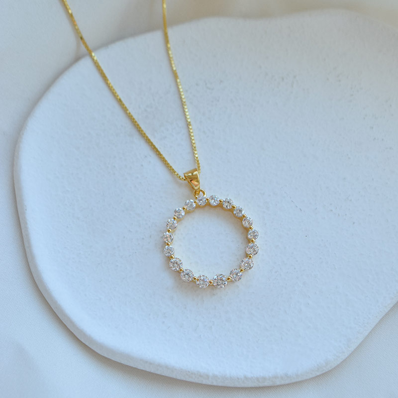 Janet halskæden i 18k forgyldt sterling sølv giver et varmt og eksklusivt udtryk med sit elegante cirkel vedhæng besat med hvide zirkonia.