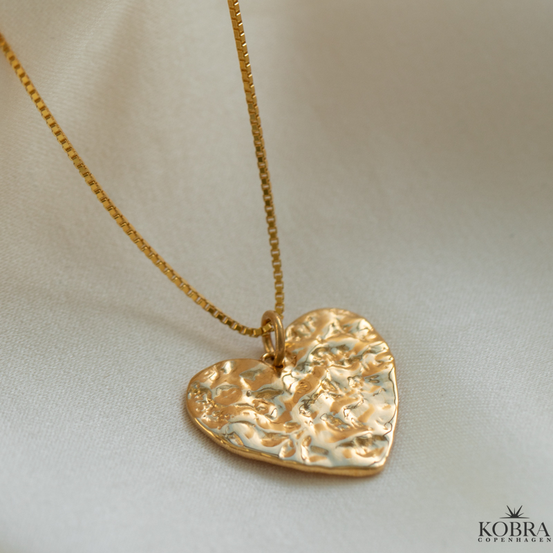 Utrolig smuk hjerte halskæde i guld med hammerslået overflade. Når det rå møder det feminine <3