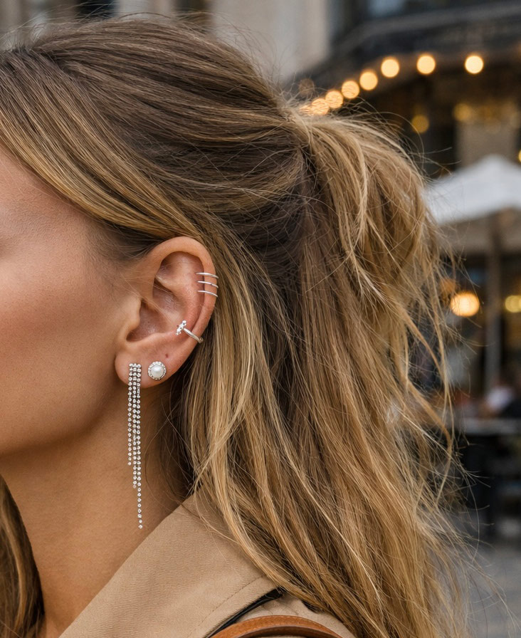 Designet er enkelt og uden sten eller vedhæng og har en åben form, der gør earcuffen let at placere på øret.