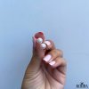 Ørestikkerne er forbundet med en kæde og har to hvide ferskvandsperler.