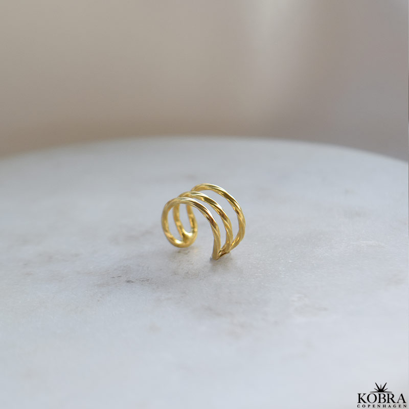 En elegant earcuff i 18k forgyldt ægte sterling sølv med et bølget, moderne design. Den er perfekt til dig, der ønsker et cool, men tidløst udtryk – helt uden behov for hul i øret.