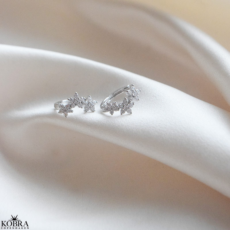 Vores Flower Hoops i ægte 925 sterlingsølv er designet med små funklende blomster, der fanger lyset fra alle vinkler. Den delikate form gør dem perfekte både til hverdagsbrug og festlige aftener.