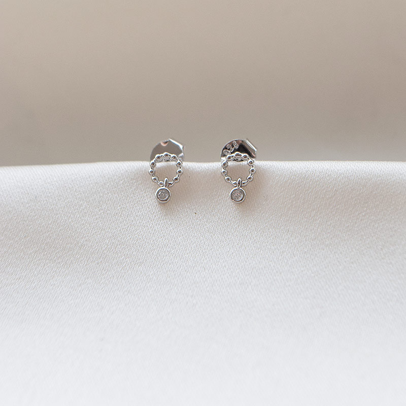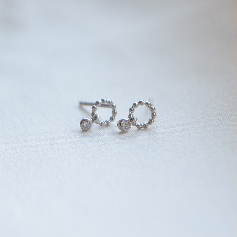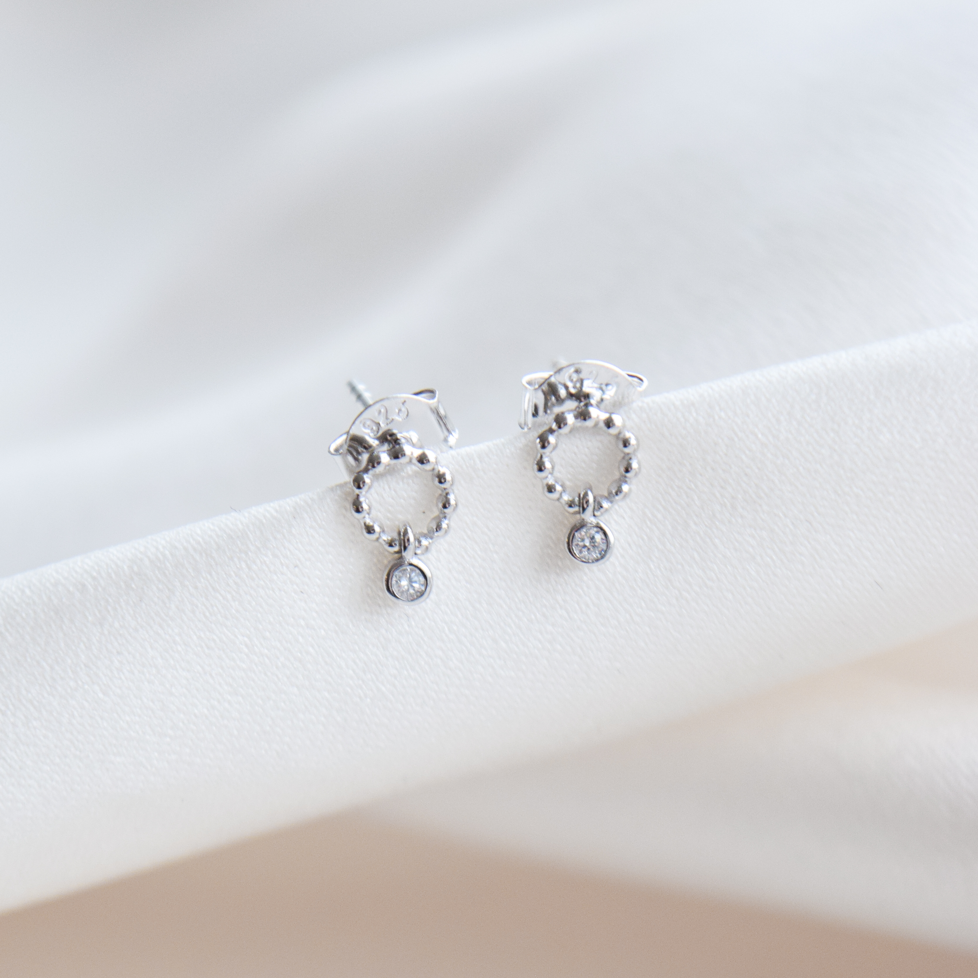 De små sølv øreringe er designet med en dekorativ cirkel med fine kugledetaljer og et let vedhæng med en klar zirkonia sten. Kombinationen giver et eksklusivt og tidløst udtryk med et diskret sparkle ⋆˙⟡