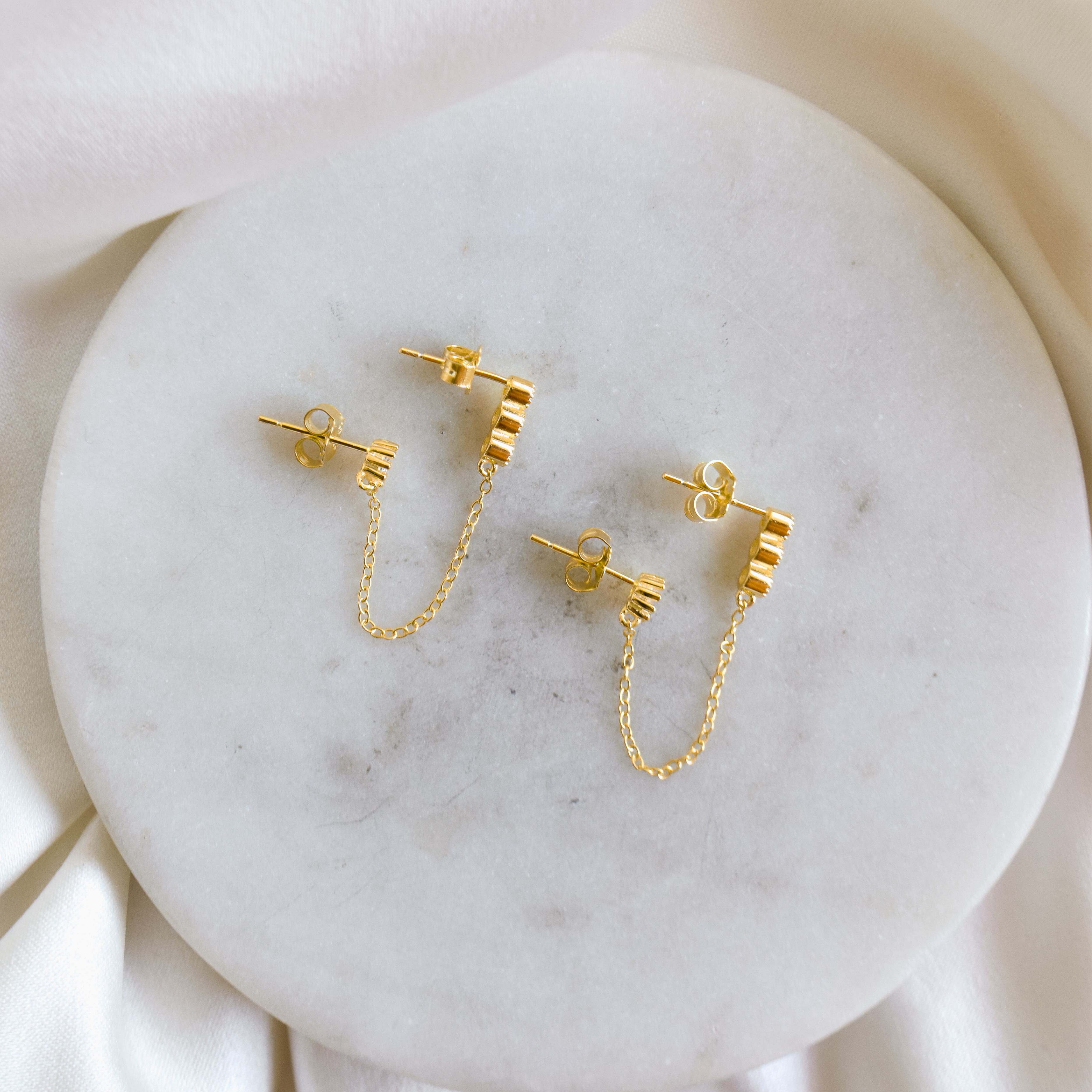 "Iris" guld kæde ørering til 2 huller (sæt)