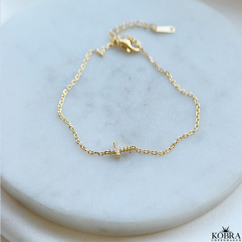 "Lucia" 18k Forgyldt armbånd med kors og zirkonia