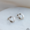 En smuk og moderne ring med en riflet rund sølvplade. Med sin enkelte dog stilfulde look er den ideel i ethvert smykkeskrin.