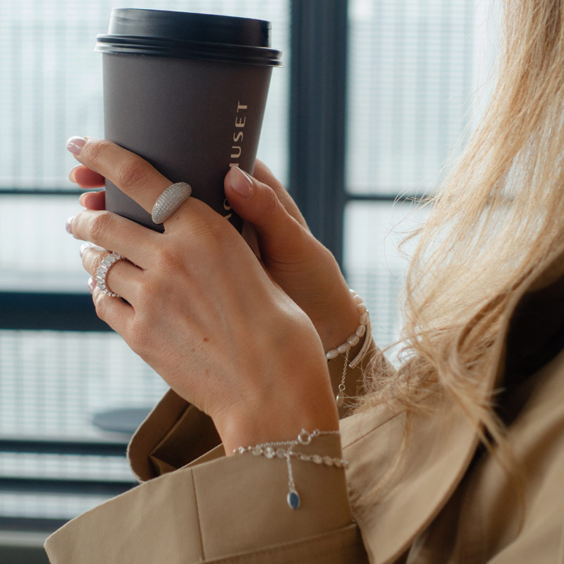 Elegant dome ring i sterling sølv med pavé-satte hvide zirkonia. Den kuppelformede ring er designet med et blødt, afrundet udtryk, der giver et moderne og sofistikeret look. Pavé-indfatningen af små, funklende zirkonia tilføjer en luksuriøs detalje, som glimter smukt i lyset. Perfekt både som hverdagsring, når du vil løfte dit outfit, eller som en iøjnefaldende detalje til festlige anledninger. Dome-ringen er tidløs i sit design og kan bæres alene som statement eller kombineres med andre smykker for et mere personligt udtryk.