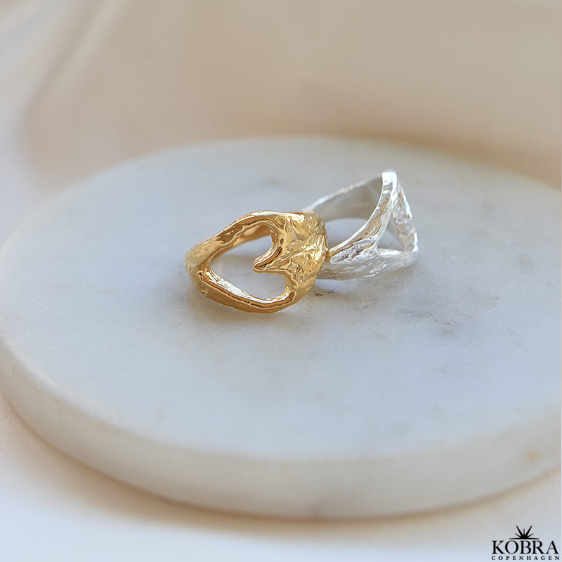 Sia Hjerte Ring er designet til dig, der tør skille dig ud. En chunky og edgy hjertering i 18 karat forgyldt sterlingsølv, skabt til at være mere end bare et smykke – den er et statement. Med sit rå og organiske udtryk kombinerer den femininitet med attitude, hvilket gør den til den perfekte ring for den moderne, trendy kvinde.