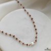 Ellish er en super fin ankelkæde til sommeren med ægte røde granater samt smuk hvid ferskvandsperle.
