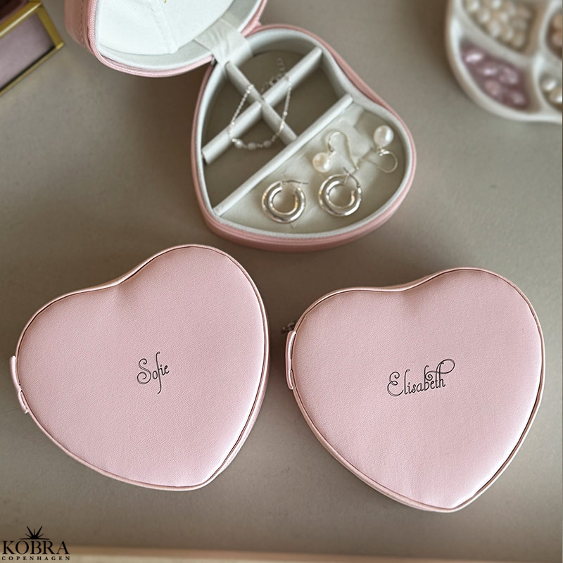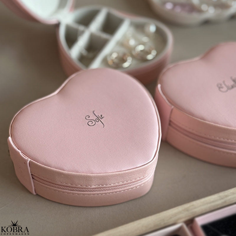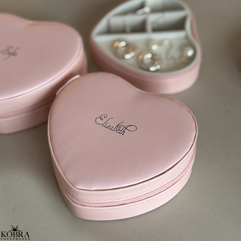 Vores rosa hjerteformede smykkeskrin er skabt til hende, der elsker smukke detaljer og personlighed. Smykkeskrinet kan graveres med det navn, du ønsker – en unik og betænksom gave til veninden, datteren, konfirmanden eller dig selv.