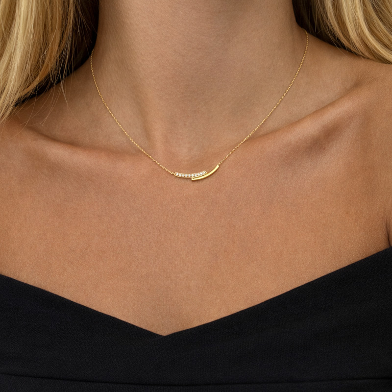Smuk og enkel guld halskæde med hvide zirkonia sten i et minimalistisk design.