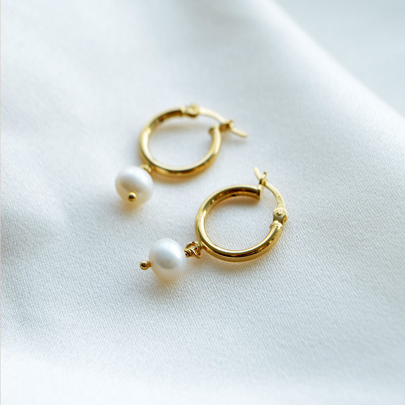 "Margrethe" guld øreringe / hoops med hvide ferskvandsperler