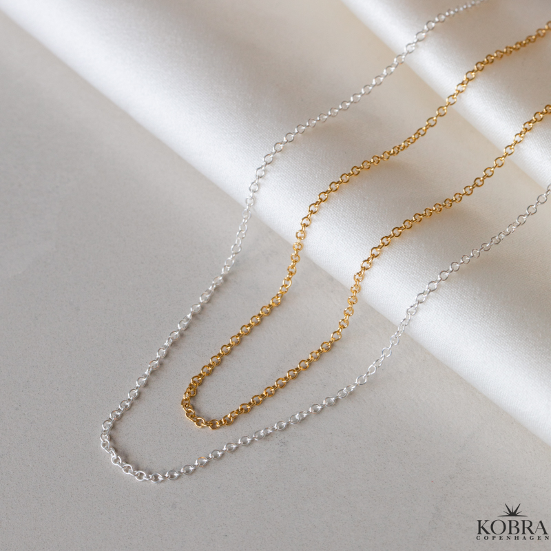 Kæderne er i sterling sølv, men du kan tilvælge 18 karat forgyldt.